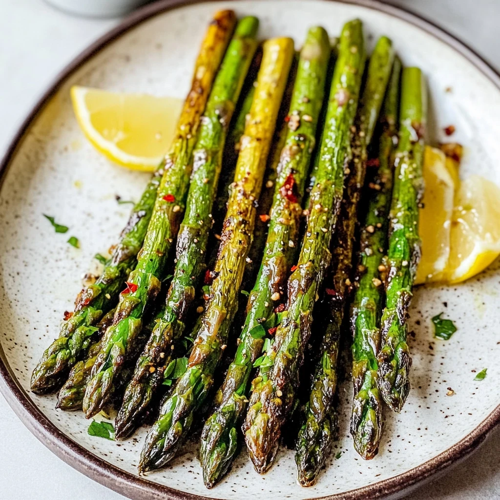 Cooking: Now it’s time to transfer your seasoned asparagus into the air fryer basket. Arrange them in a single layer to ensure even cooking—this is key for that perfect crispiness. Set the timer for about 8-10 minutes. Halfway through the cooking time, give the basket a good shake. This not only helps the asparagus cook evenly but also lets you enjoy the fragrant aroma wafting from your air fryer. Keep an eye on them; you want them tender yet slightly crispy. Once they’re done, carefully remove them from the air fryer—be cautious as they will be hot! Serve immediately for the best flavor and texture experience. Enjoy this simple yet delicious dish that highlights the fresh taste of asparagus!