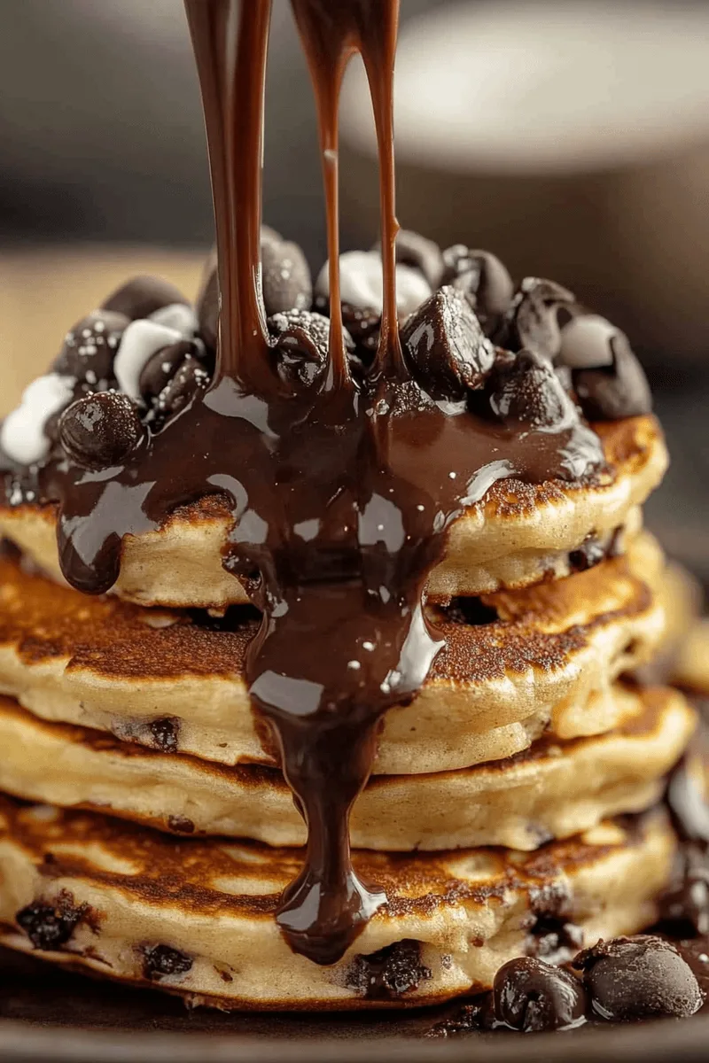 Fluffy, golden pancakes studded with melty chocolate chips—perfect for a cozy breakfast or brunch treat.