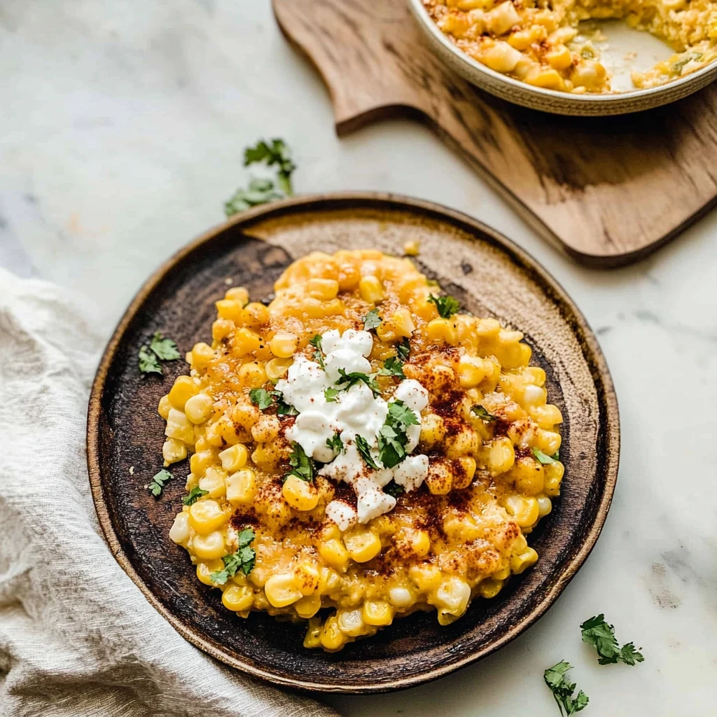 A creamy and flavorful casserole inspired by the classic Mexican street corn, featuring corn, cheese, and spices.
