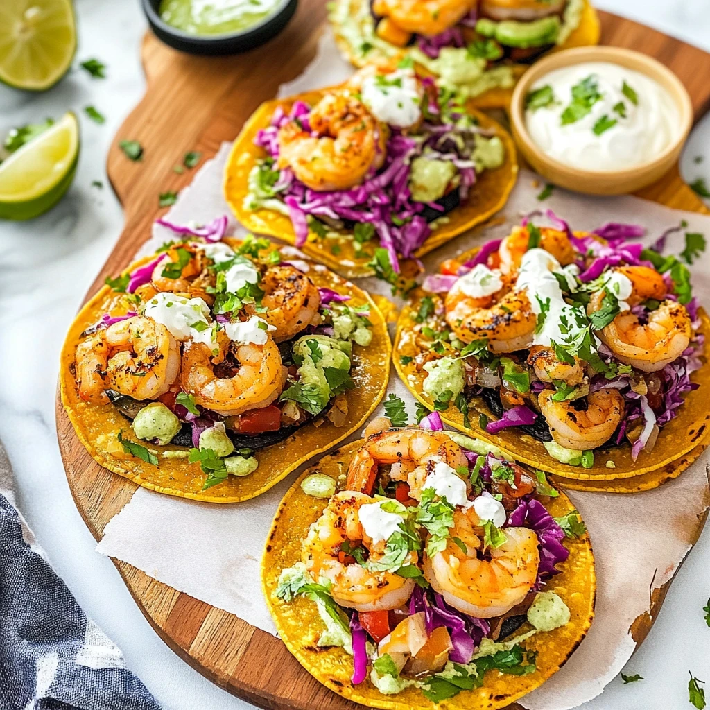 These shrimp tostadas are best enjoyed fresh! Serve them immediately after assembling to keep the tortillas crispy. Pair with a refreshing beverage like lime-infused water or a light beer to complement the flavors. Consider adding extra toppings such as pickled jalapeños or radishes for an added kick if desired.