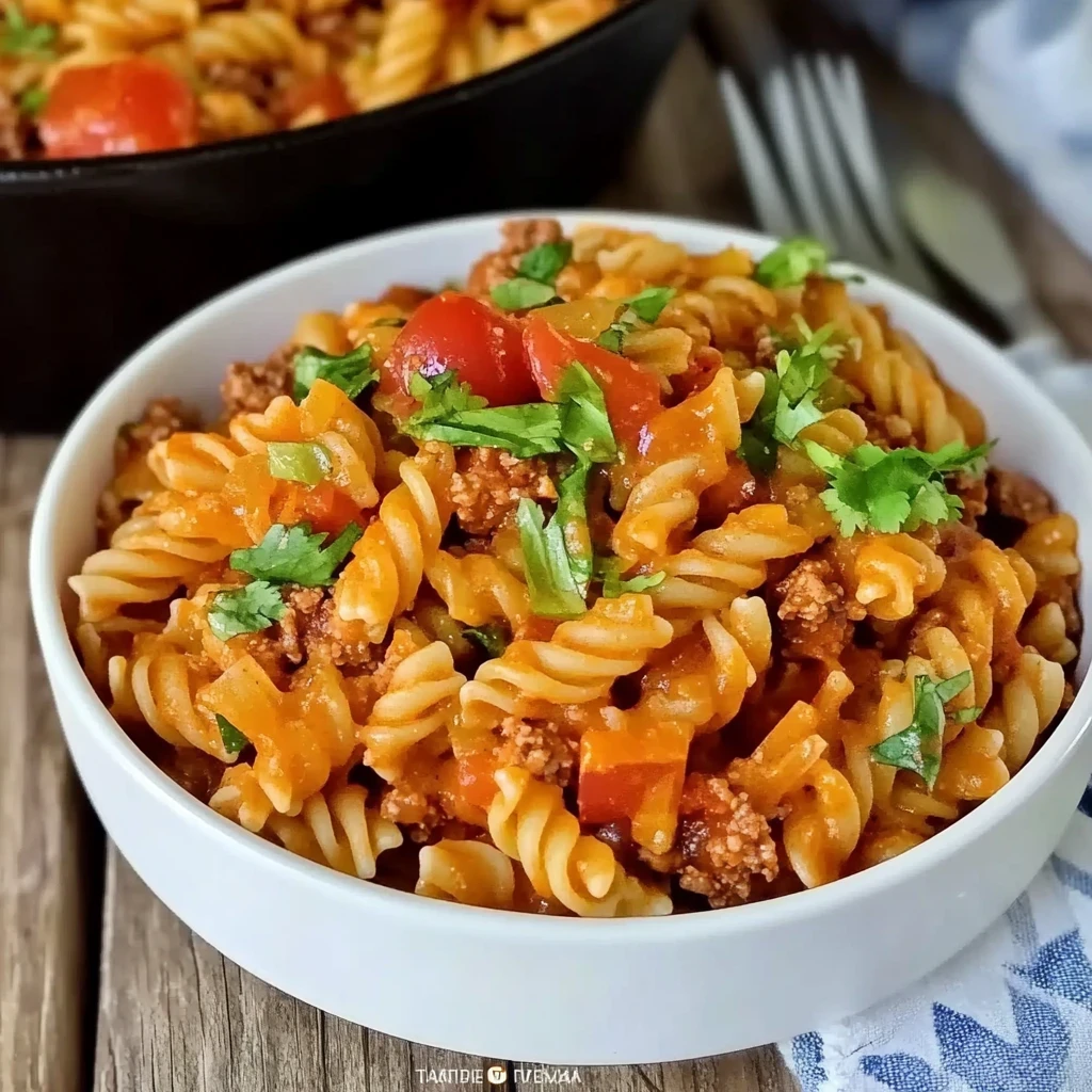 One summer picnic, my friends devoured this taco pasta salad, asking for seconds and raving about its vibrant flavors.